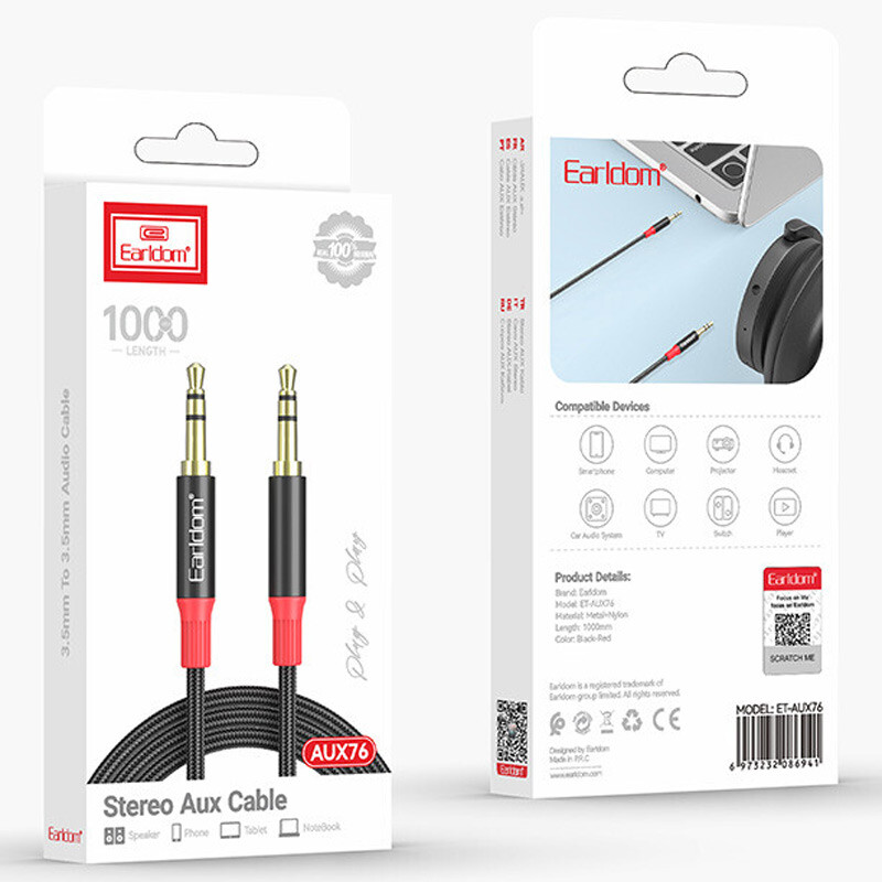رابط جک 3.5 میلی متری صدای Earldom مدل AUX76 با طول 100 سانتی متر